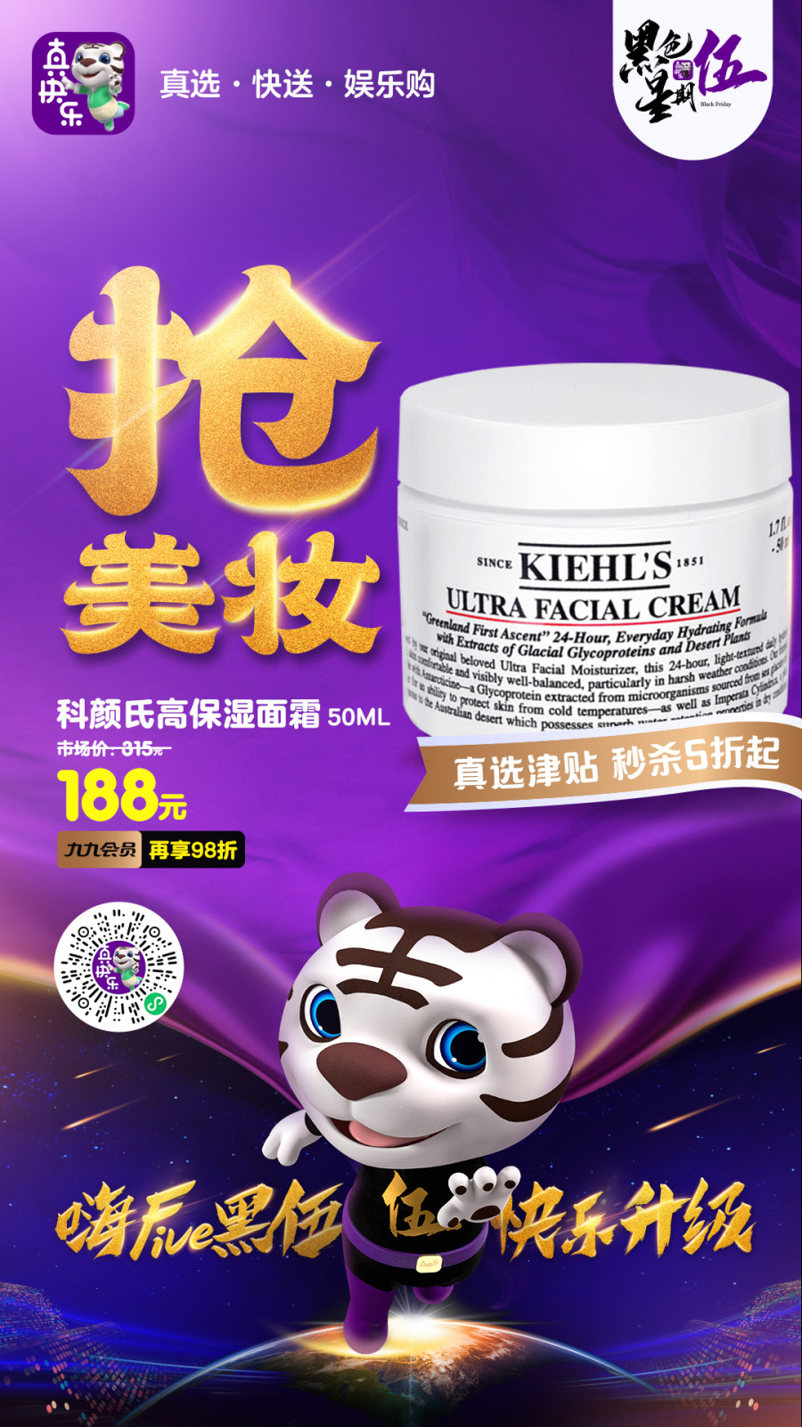 “真快乐”大牌美妆放心买 科颜氏面霜秒杀价仅188元